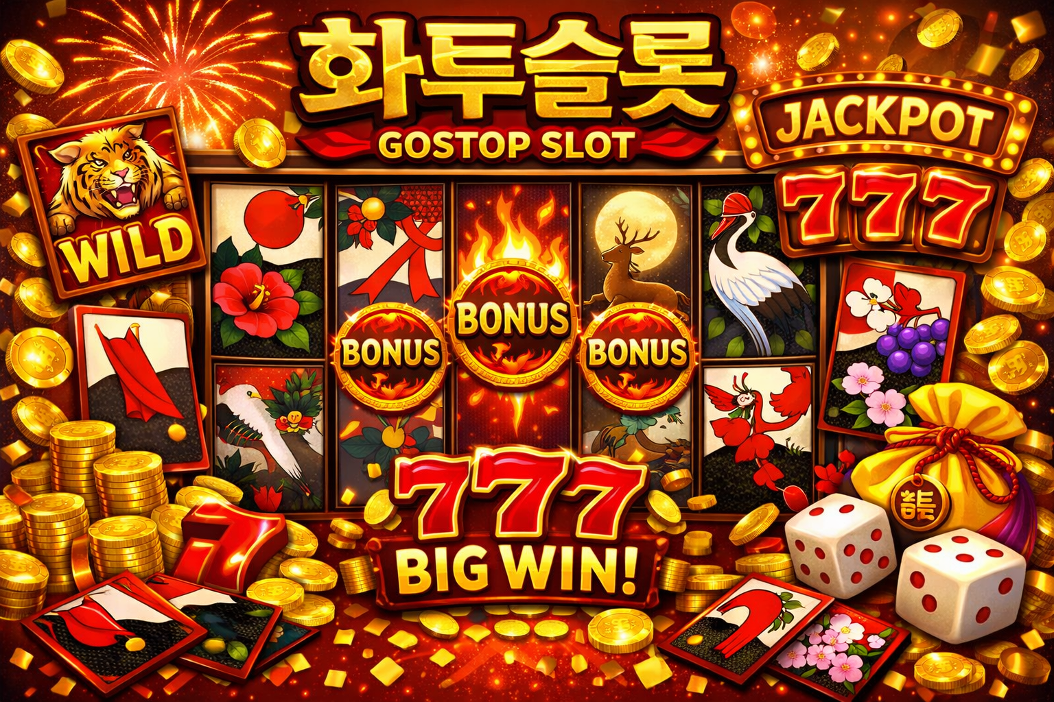 벚꽃이 흩날리는 환상적인 정원 속에서 펼쳐지는 화투 테마 슬롯 게임입니다.